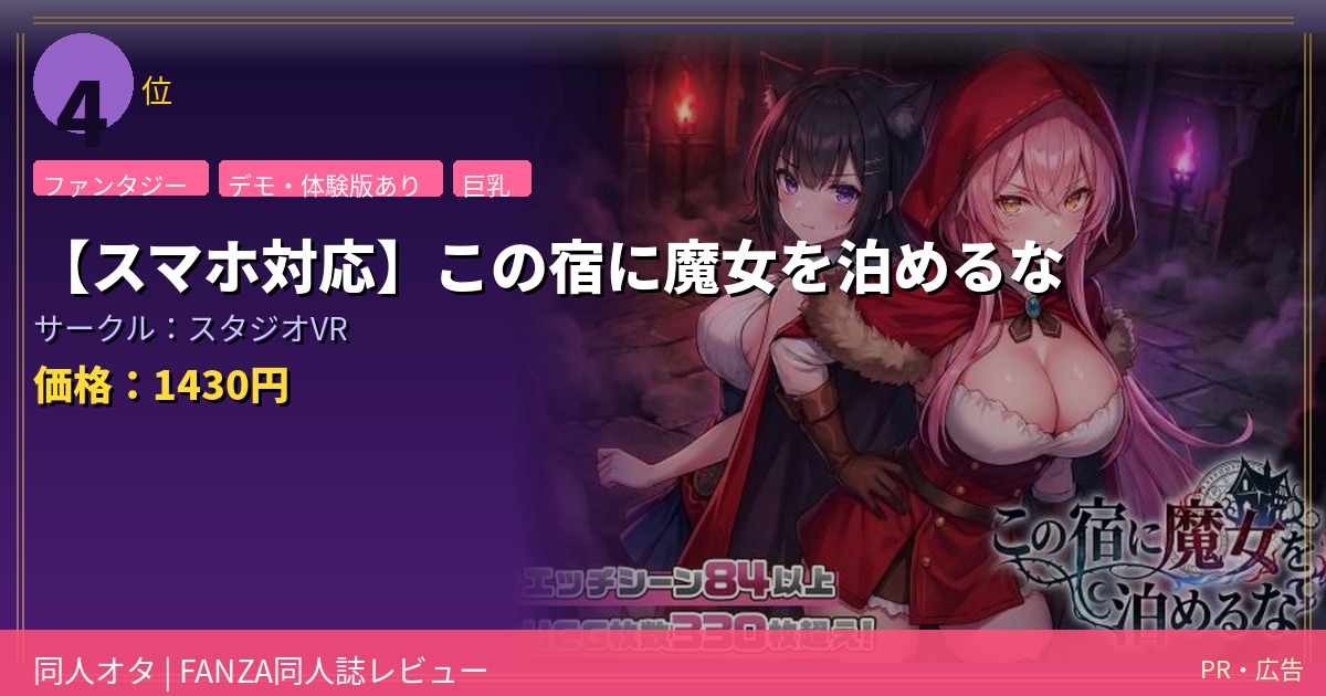 この宿に魔女を泊めるなってどんな感じ?いやー、これね、最初はタイトルだけ見て「またファンタジー系の普通のエロゲかな?」って軽く思ってたんだけど、プレイしてみたら想像以上に引き込まれちゃってさ。ざっくり言うと、あなたがとある宿屋の主人になって...